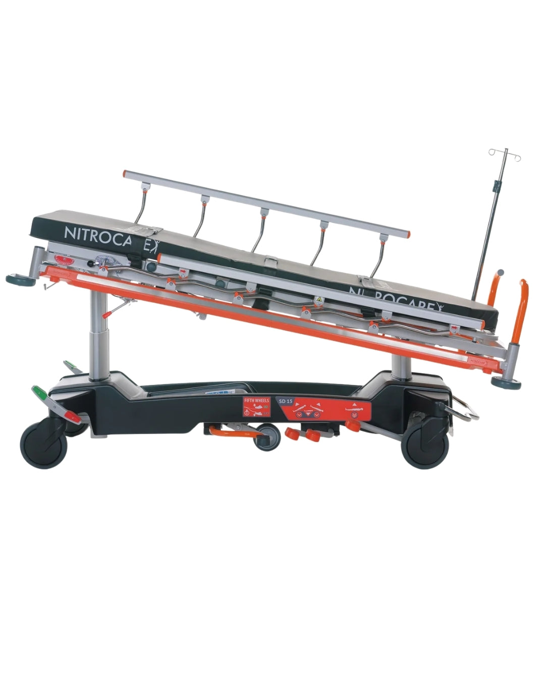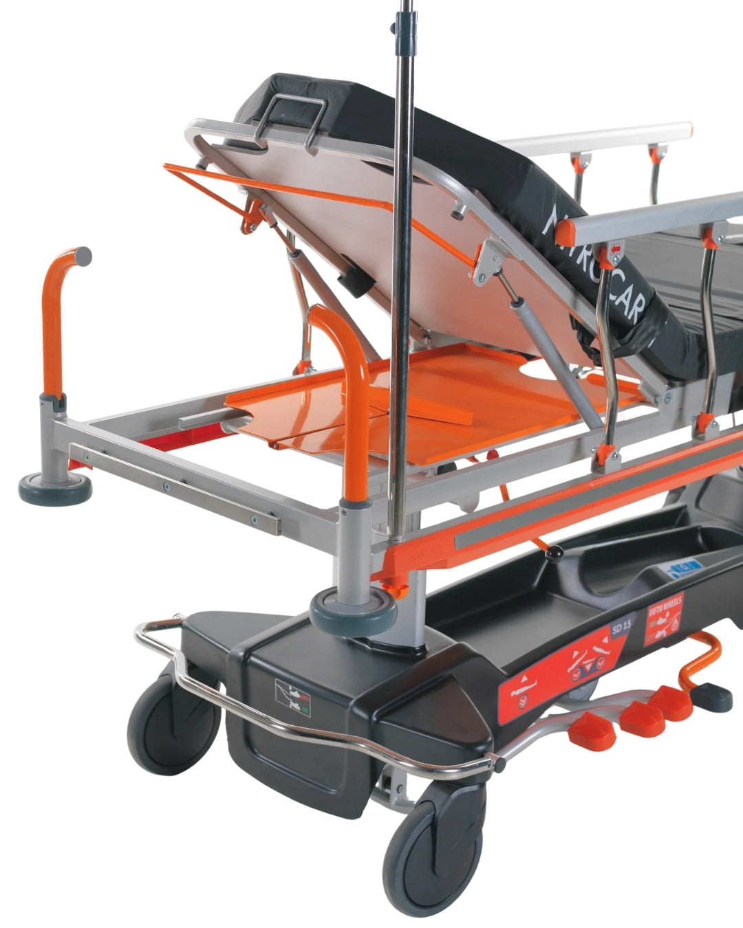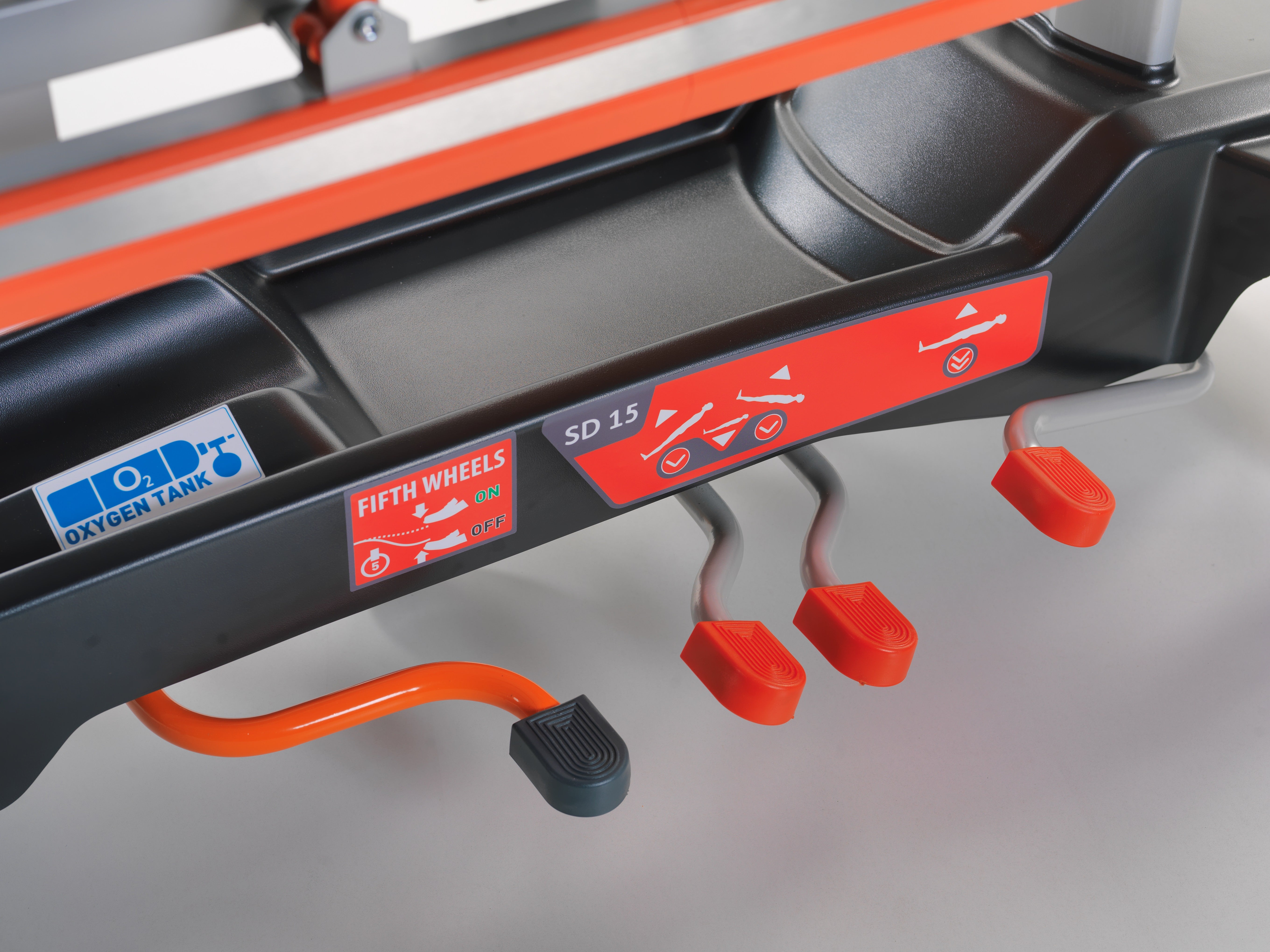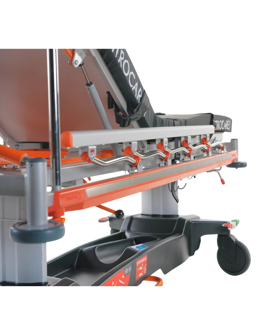 Featuring Trendelenburg and Reverse Trendelenburg capabilities, along with a specialized X-Ray translucent surface, the SD15 ensures that medical staff can perform critical diagnostics and emergency interventions without unnecessary patient transfer. Its 5th-wheel steering system ensures superior maneuverability through tight hospital corridors, making it an essential asset for high-traffic medical facilities.