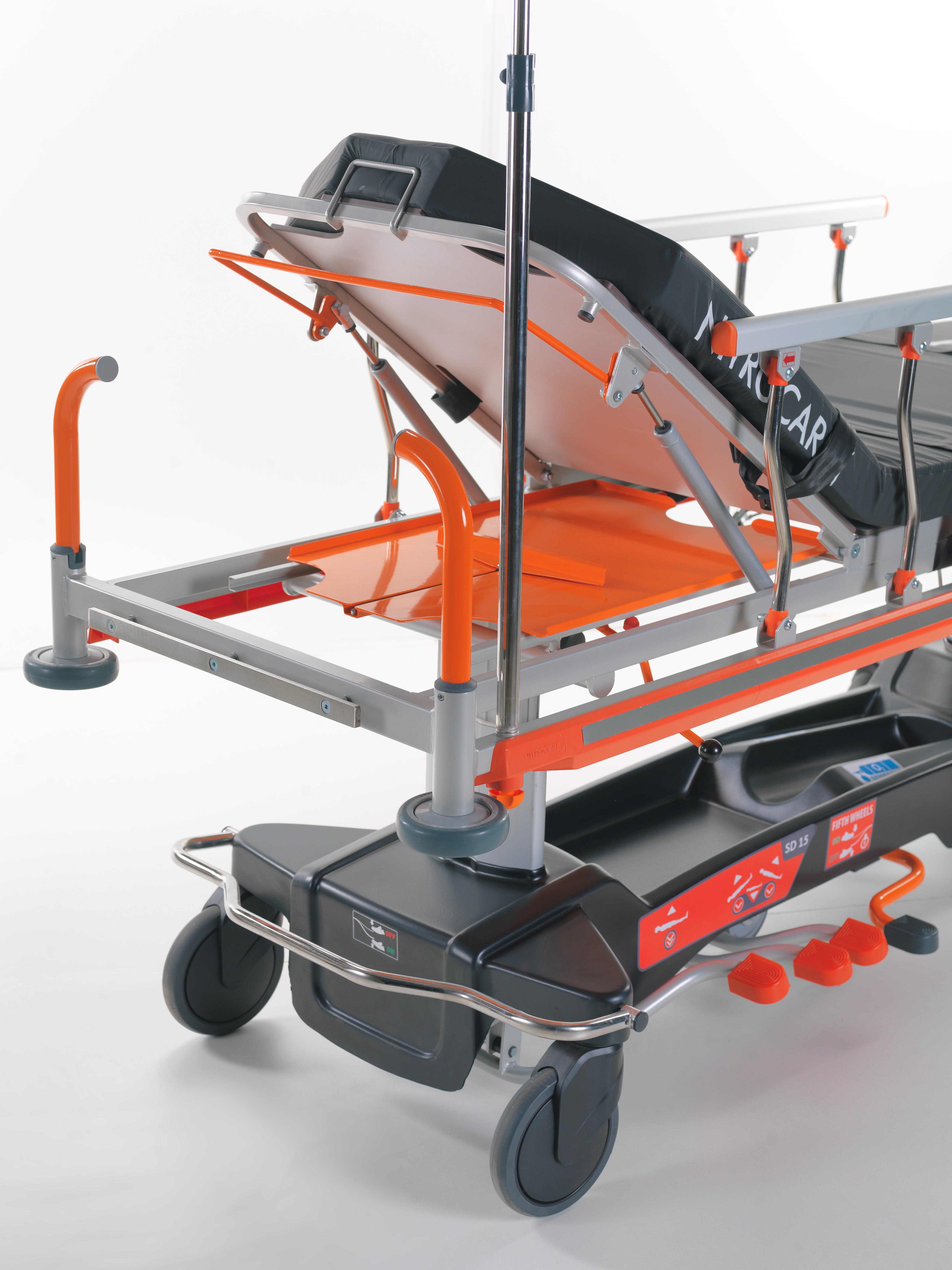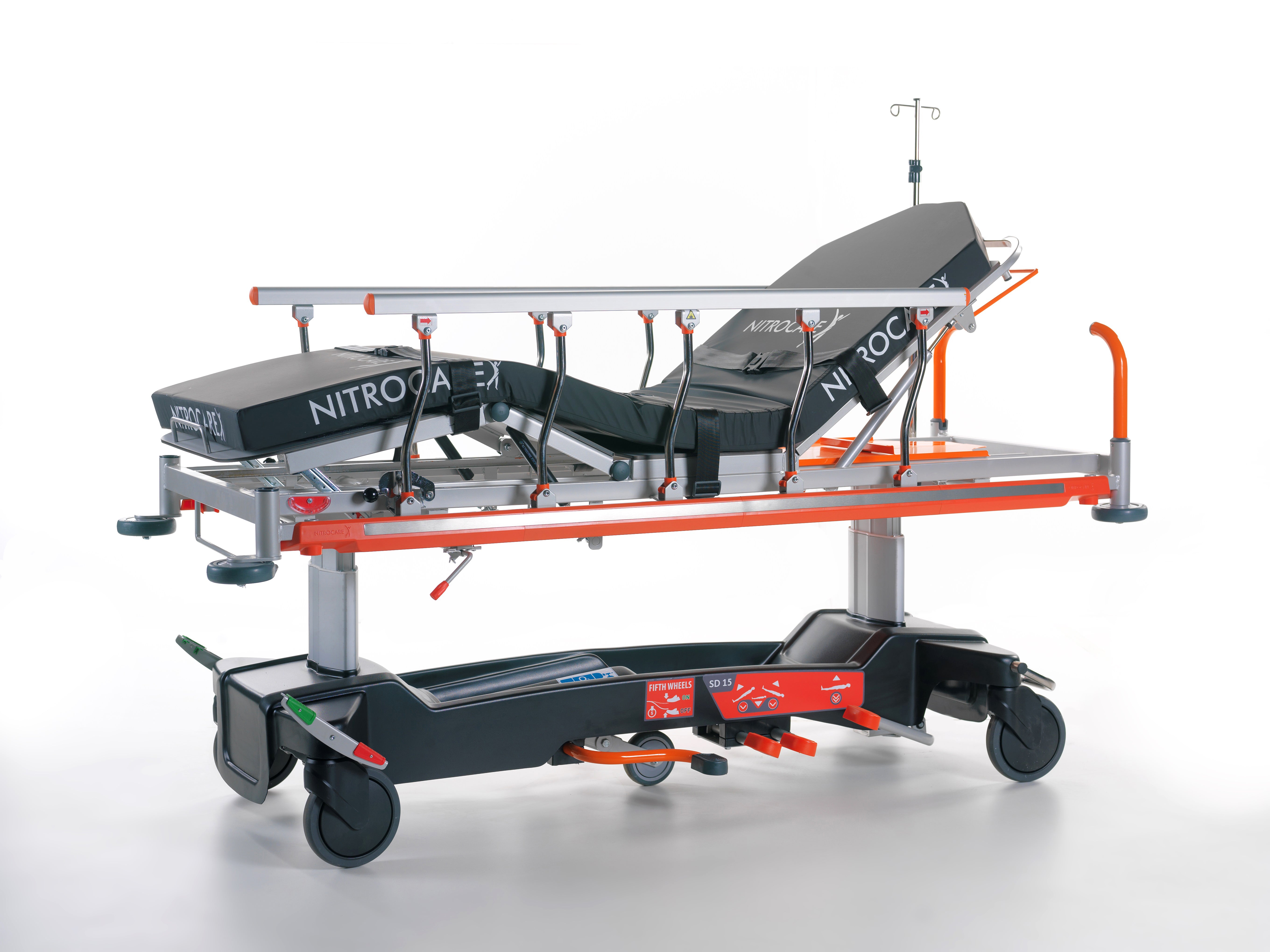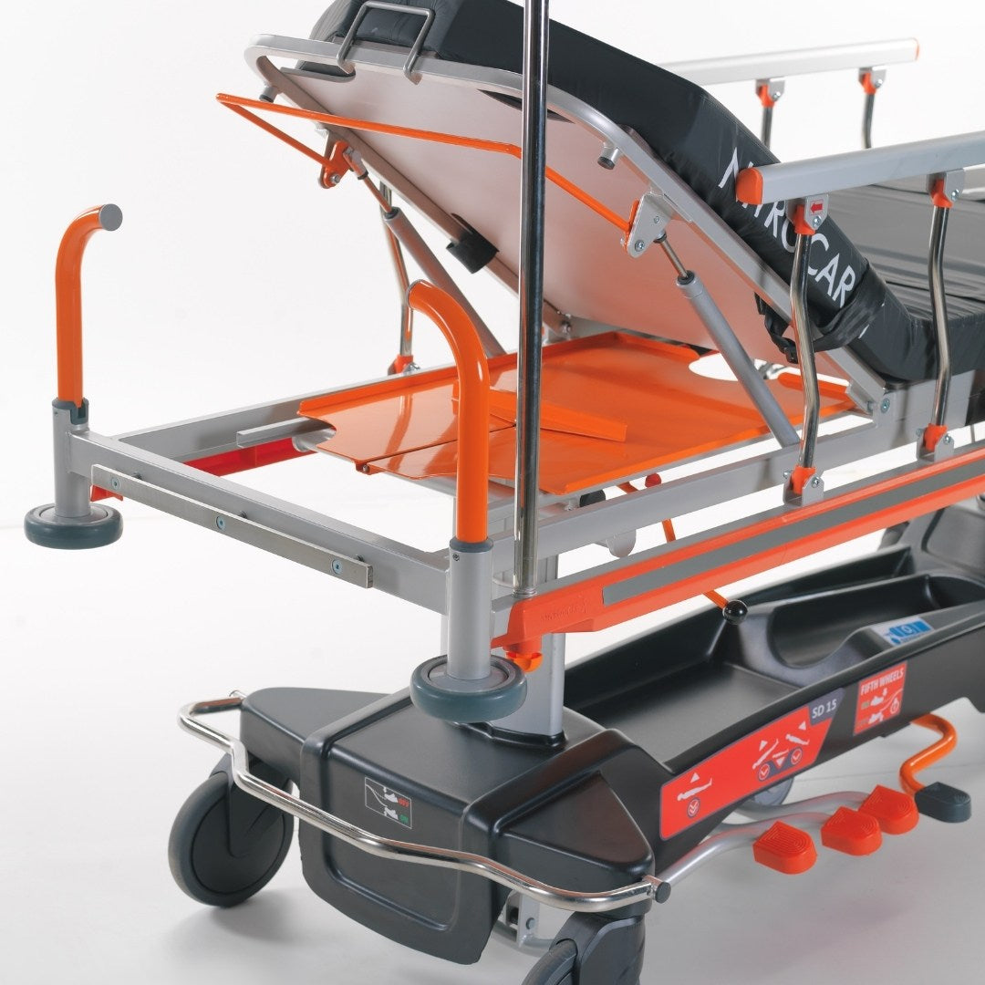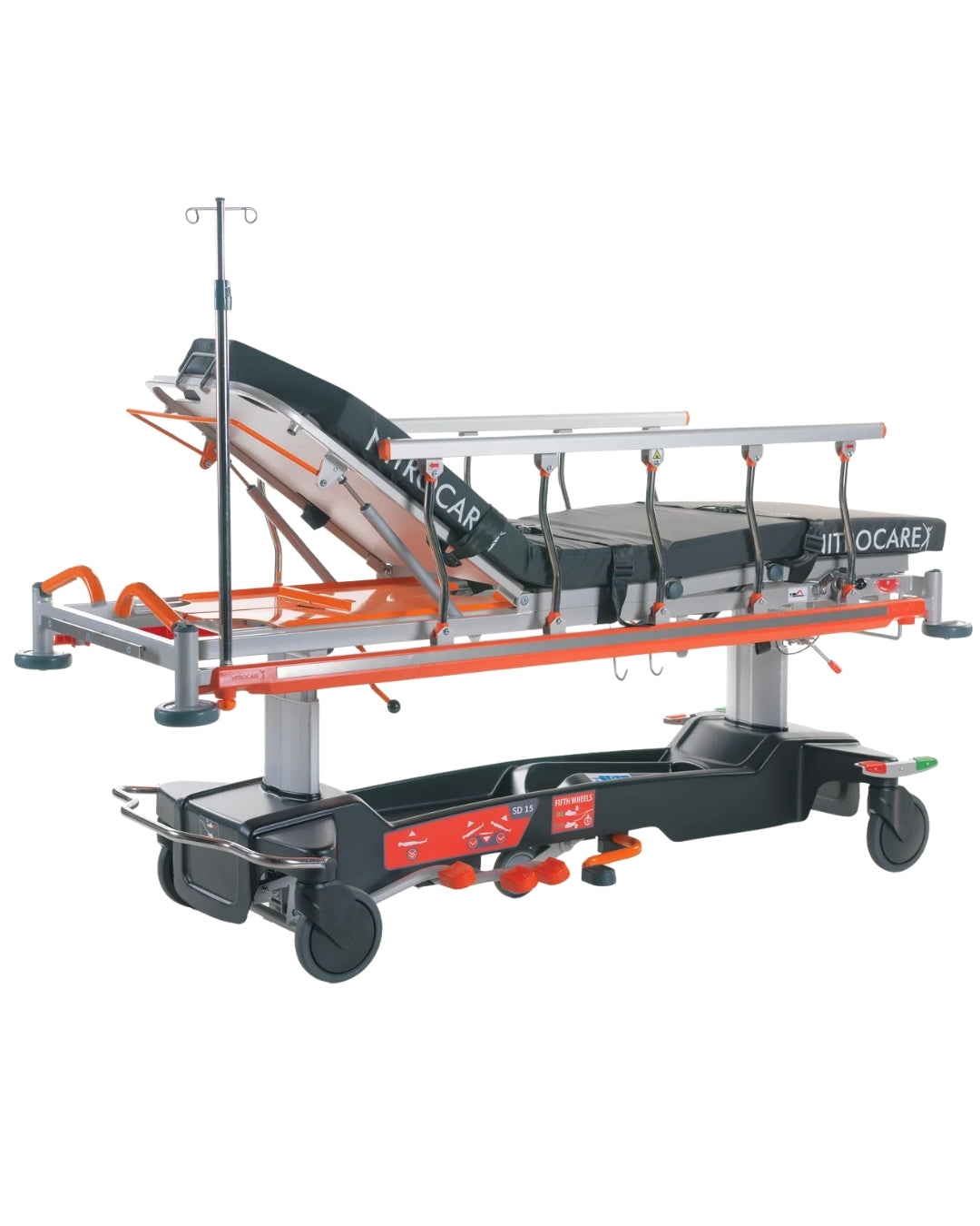 Featuring Trendelenburg and Reverse Trendelenburg capabilities, along with a specialized X-Ray translucent surface, the SD15 ensures that medical staff can perform critical diagnostics and emergency interventions without unnecessary patient transfer. Its 5th-wheel steering system ensures superior maneuverability through tight hospital corridors, making it an essential asset for high-traffic medical facilities.