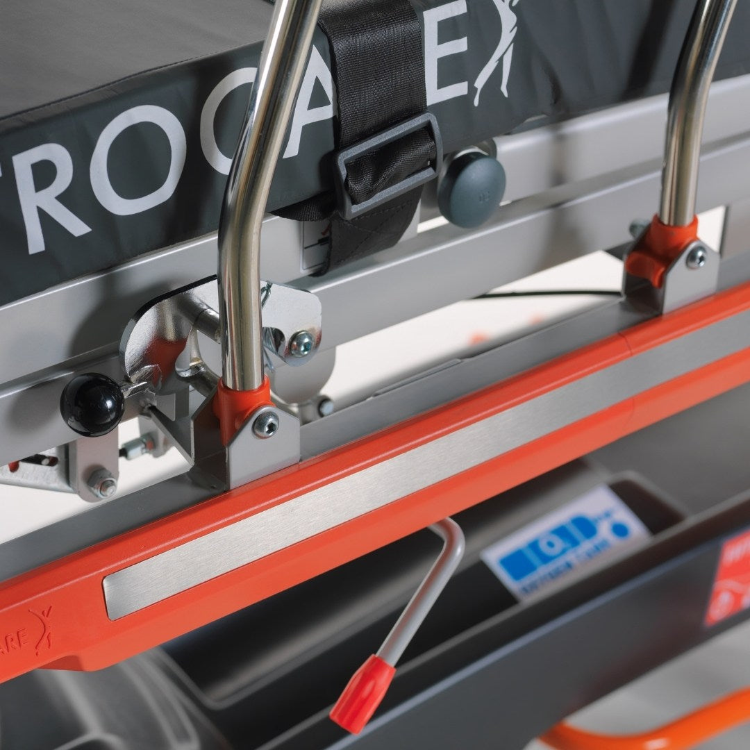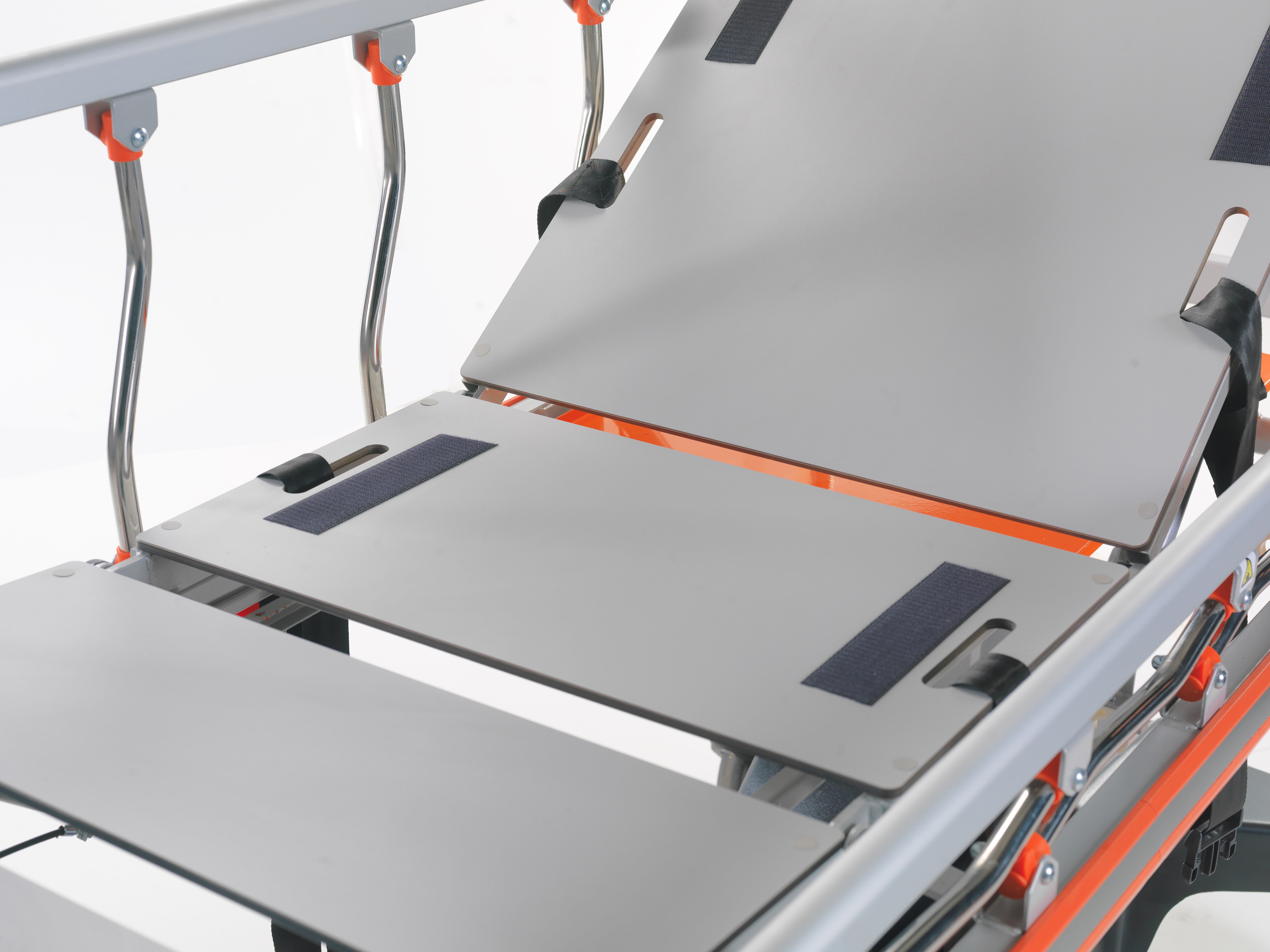 X-Ray Compatible Surface: Four-part stretcher deck designed to accommodate X-Ray imaging for trauma and diagnostic needs.