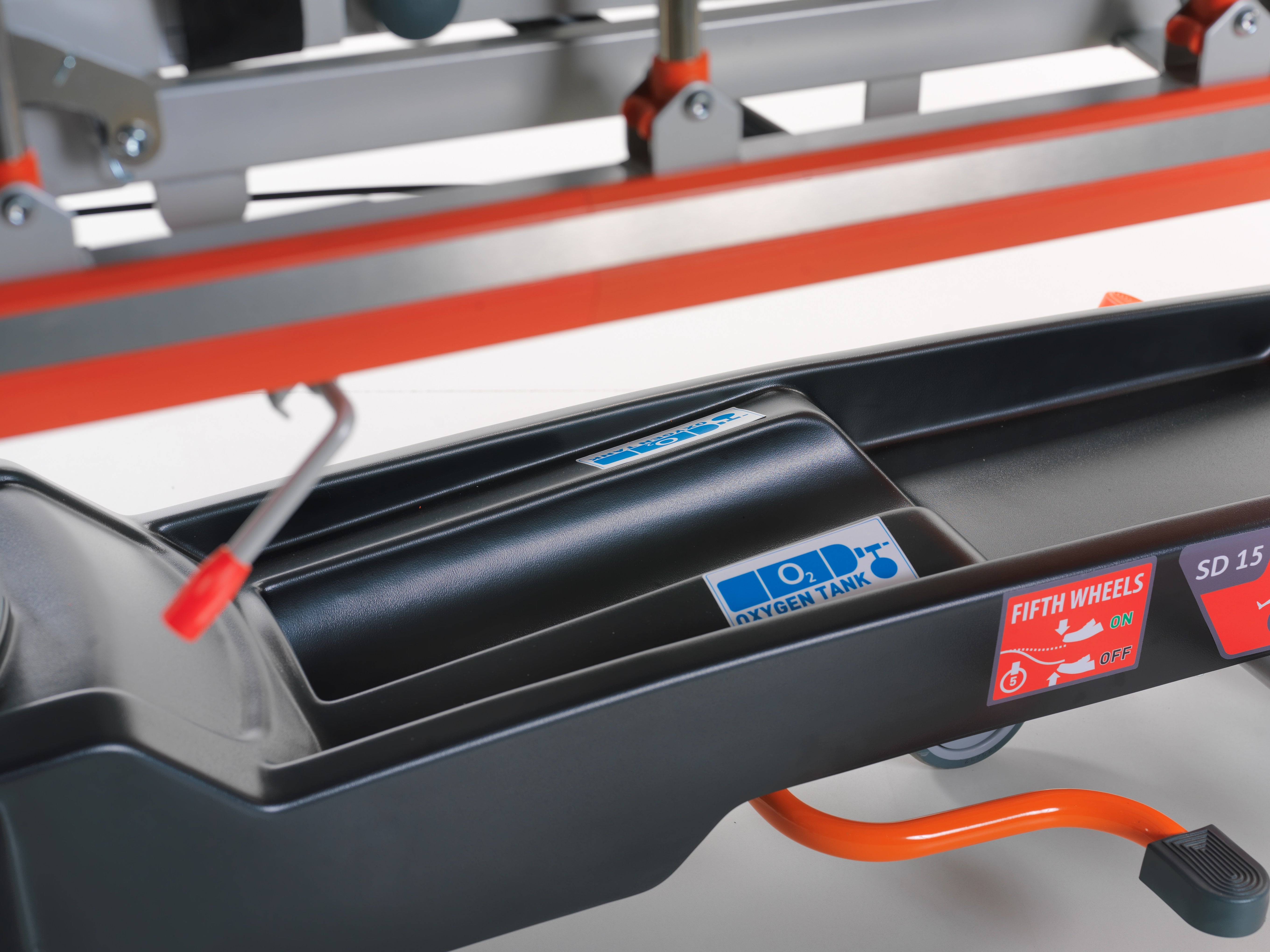 Integrated Utility Storage: Includes a built-in oxygen cylinder/requirement basket and multiple accessory slots.