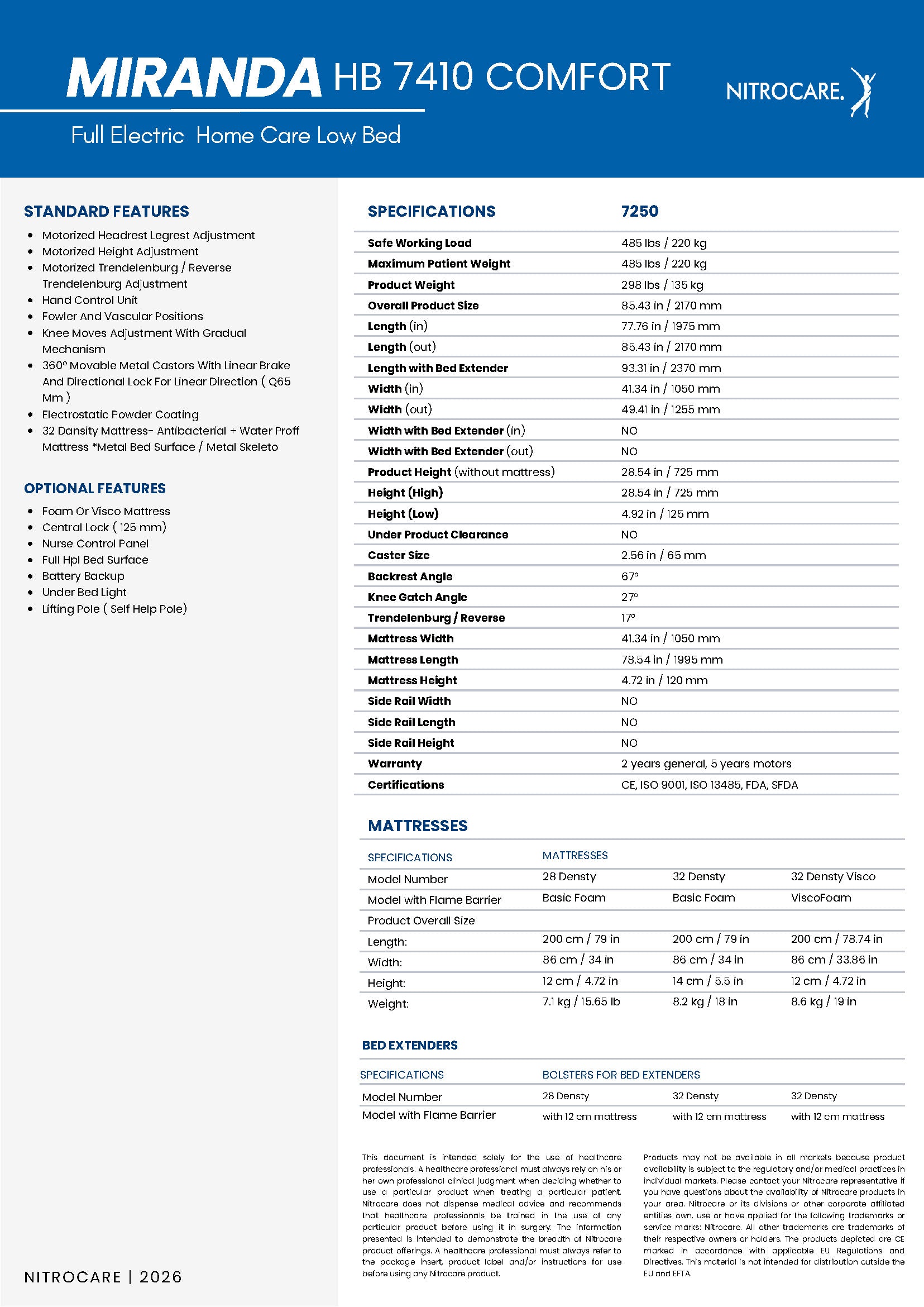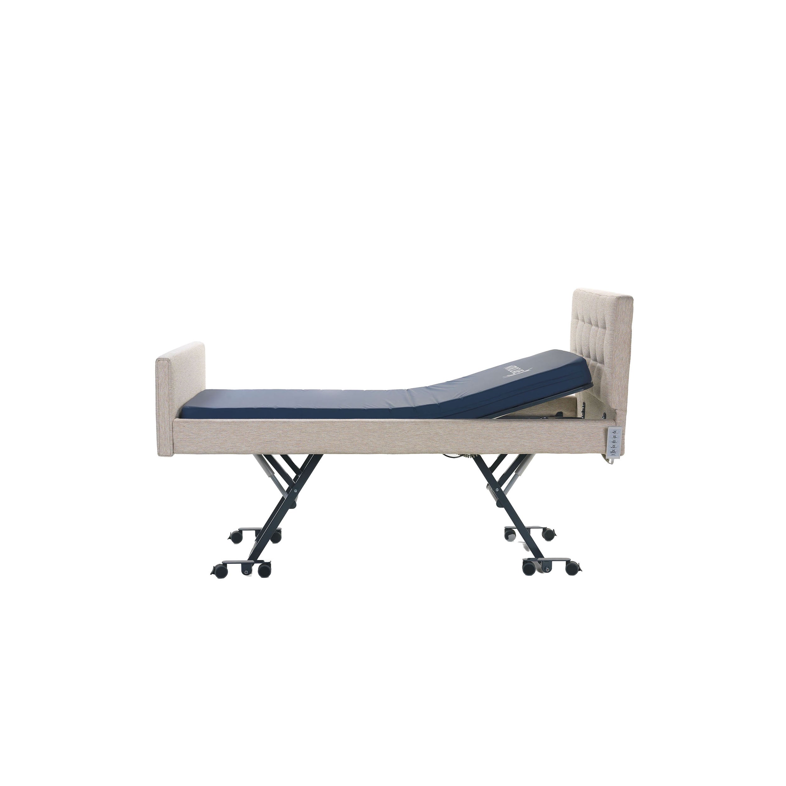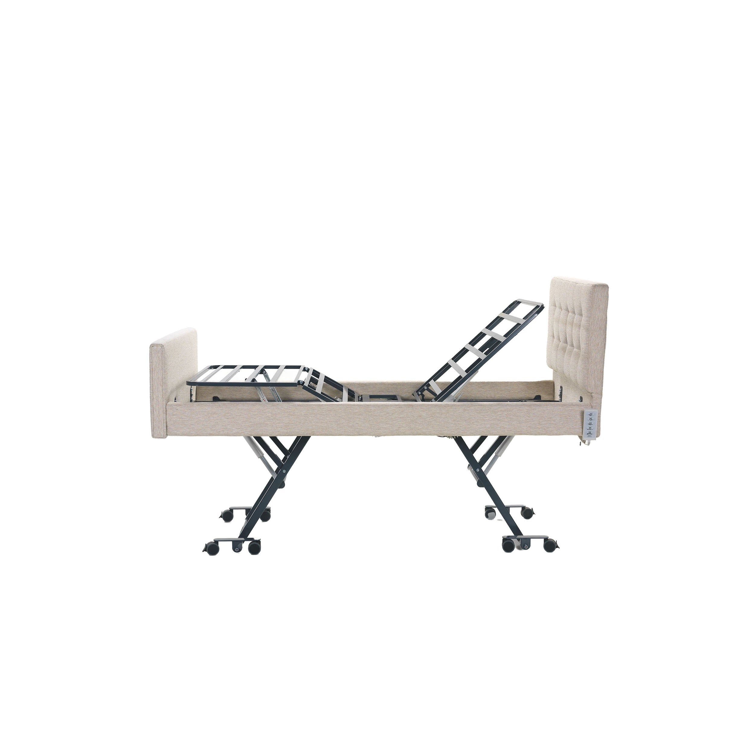 The Nitrocare Miranda 7410C is a high-performance, 4-motor full electric homecare bed designed to provide intensive clinical support within a sophisticated residential aesthetic. Engineered to eliminate the institutional feel of traditional medical furniture, this unit features a premium upholstered soft-shell design that integrates seamlessly into home interiors while offering investment-grade durability. The advanced 4-motor system enables precise, motorized adjustments of the headrest, leg rest, and height, including therapeutic Trendelenburg and Reverse Trendelenburg positions (17 degrees), all managed via an intuitive ergonomic hand control. By automating complex positioning, the Miranda 7410C reduces the physical burden on caregivers and enhances patient autonomy, making it a critical asset for long-term recovery and chronic care management.