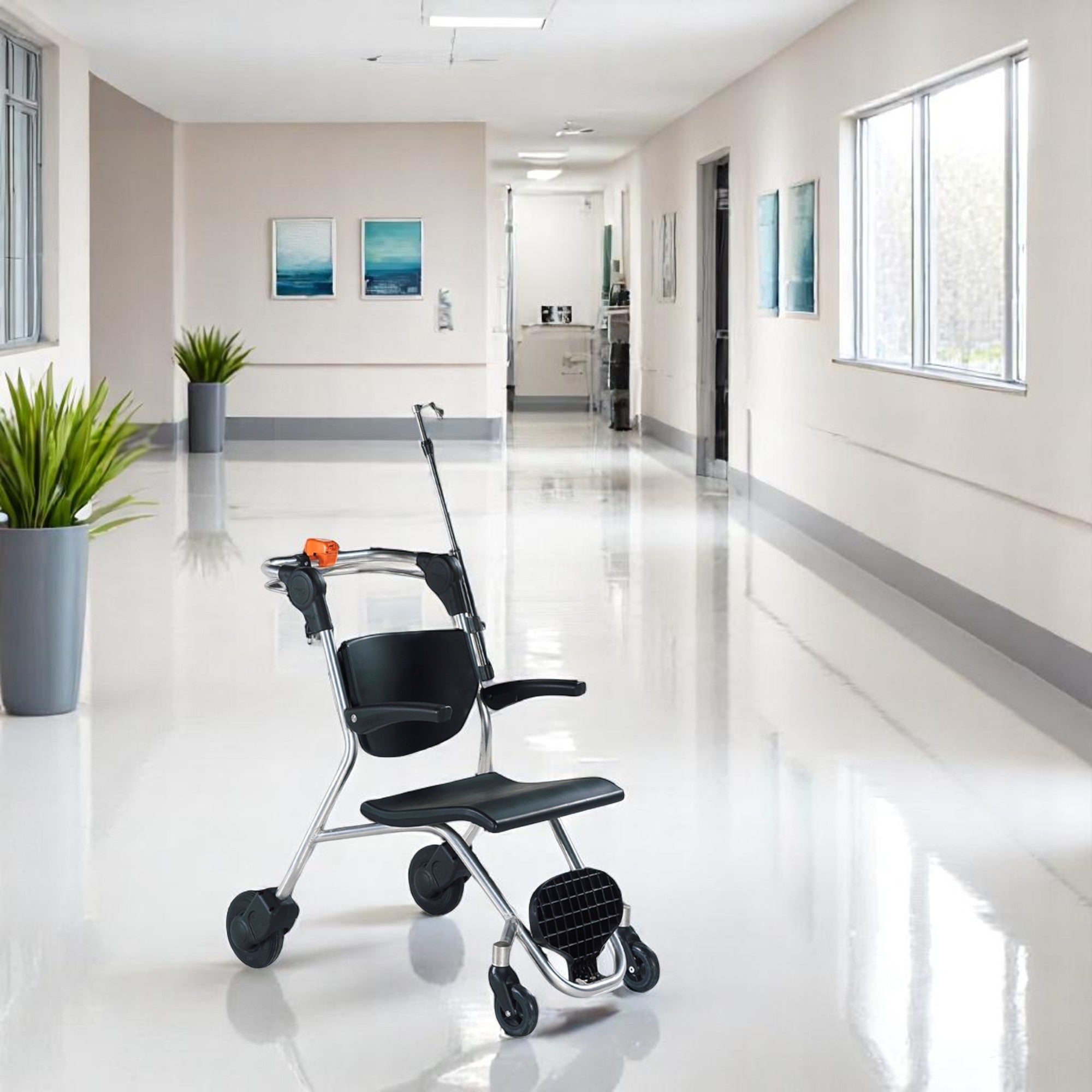 Equipped with 360º swivel castors and a nestable frame design, the BRIO X5 is perfect for navigating tight spaces, optimizing storage, and facilitating travel. It supports a maximum weight capacity of 308.65 lbs (140 kg) and includes an adjustable IV pole, making it a versatile and reliable option for use in hospitals, clinics, home care, and general transport scenarios.