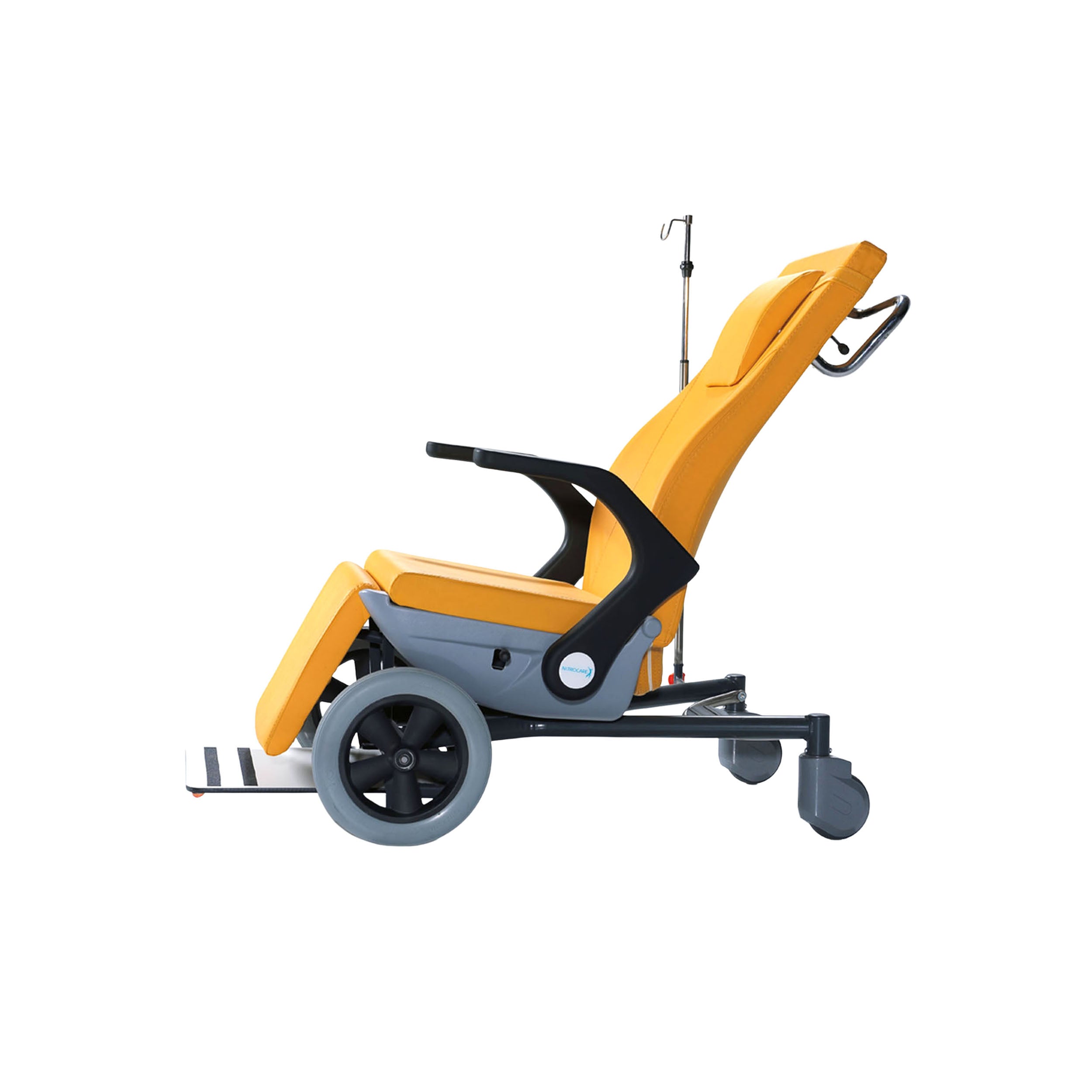 The TREK X6 Patient Transfer Wheelchair combines comfort and functionality with a space-saving, nestable design for easy storage. Made with a durable stainless steel frame, it features polyurethane armrests, seating, and backrest for patient comfort. Key features include foldable armrests, hideable footboards, a height-adjustable IV stand, and 360º swivel castors for smooth maneuverability. This wheelchair is designed to enhance both patient comfort and efficiency in healthcare settings.