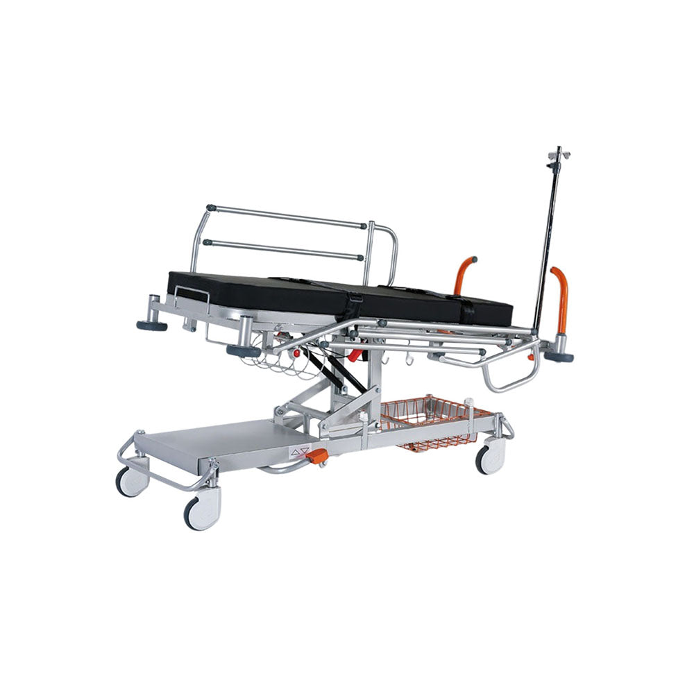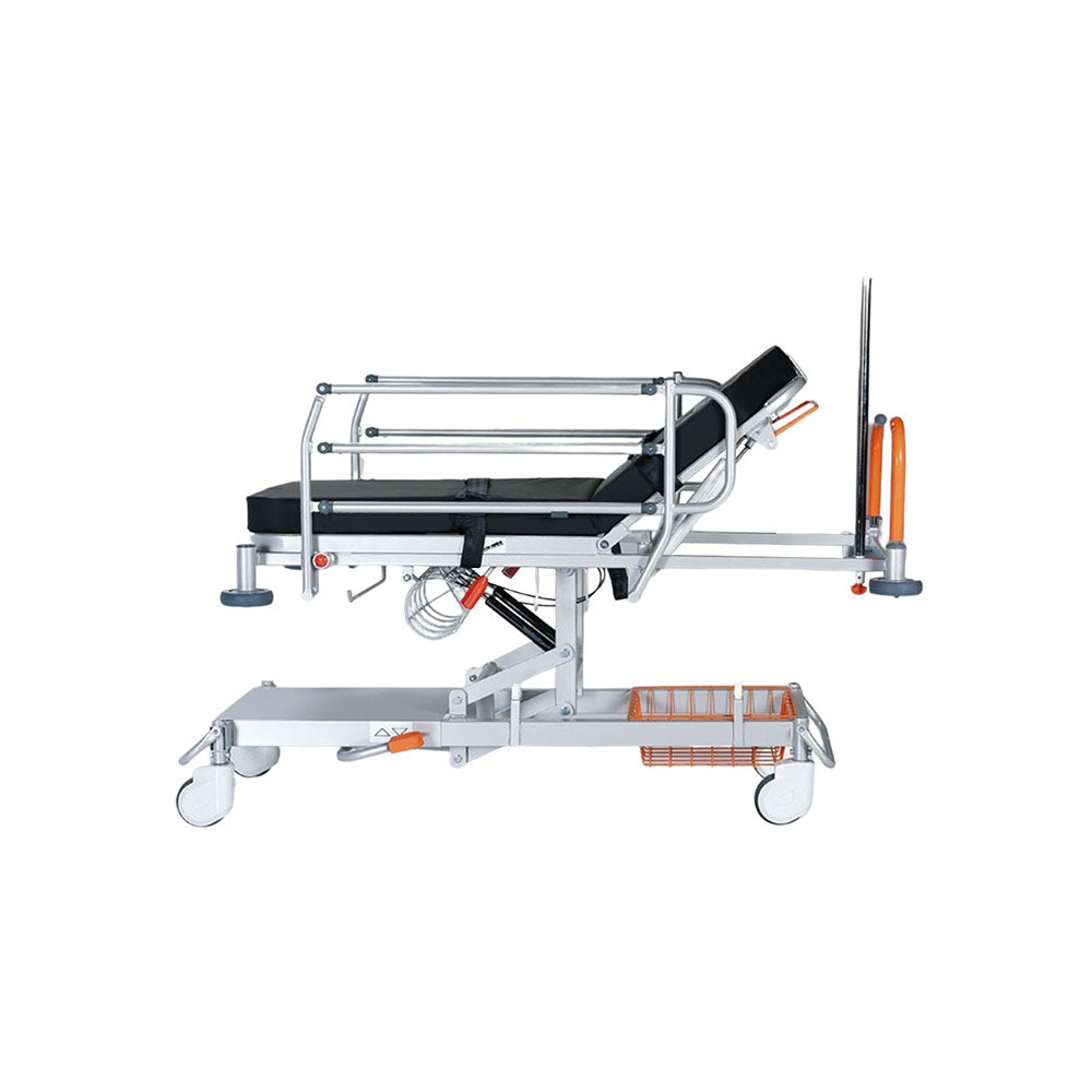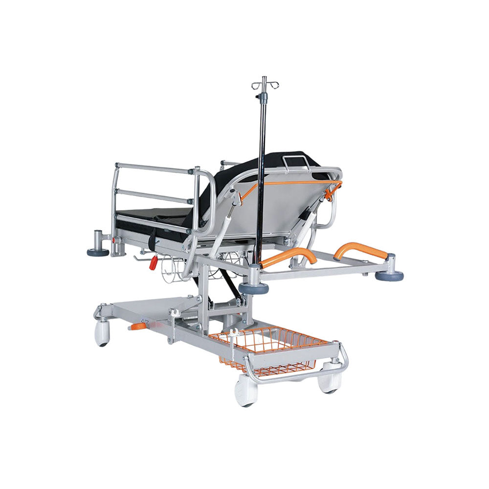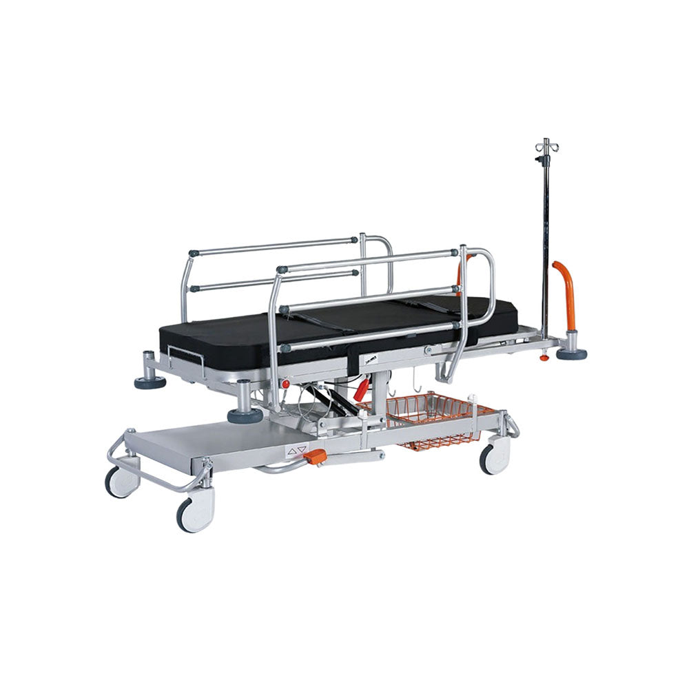 The LILO SD01-P Pediatric Transport Stretcher offers a safe, comfortable solution for transporting pediatric patients in hospitals and ambulances, featuring foldable, lockable side rails, hydraulic controls for bed, backrest, and headrest adjustments, and gas springs for smooth height adjustments. It includes a hygienic lying surface, durable powder-coated side rails, metal push handles, a height-adjustable IV stand, oxygen tube holder, wire basket, and 360-degree rotating castors with brakes, ensuring maneuverability, practicality, comfort, and safety for young patients.