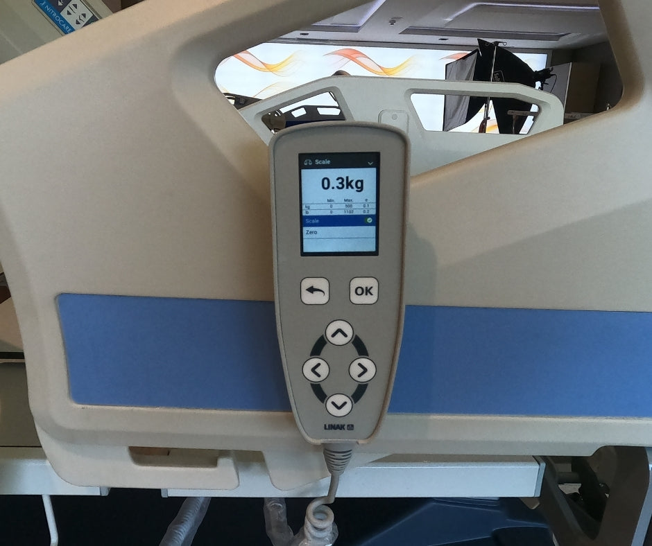 This optional module, features an In-Bed Weighing System that easily measures the patient's weight without the need to lift them from the bed. This functionality provides crucial support for healthcare personnel to monitor fluid balance and treatment effectiveness through routine patient weight tracking via the handset.