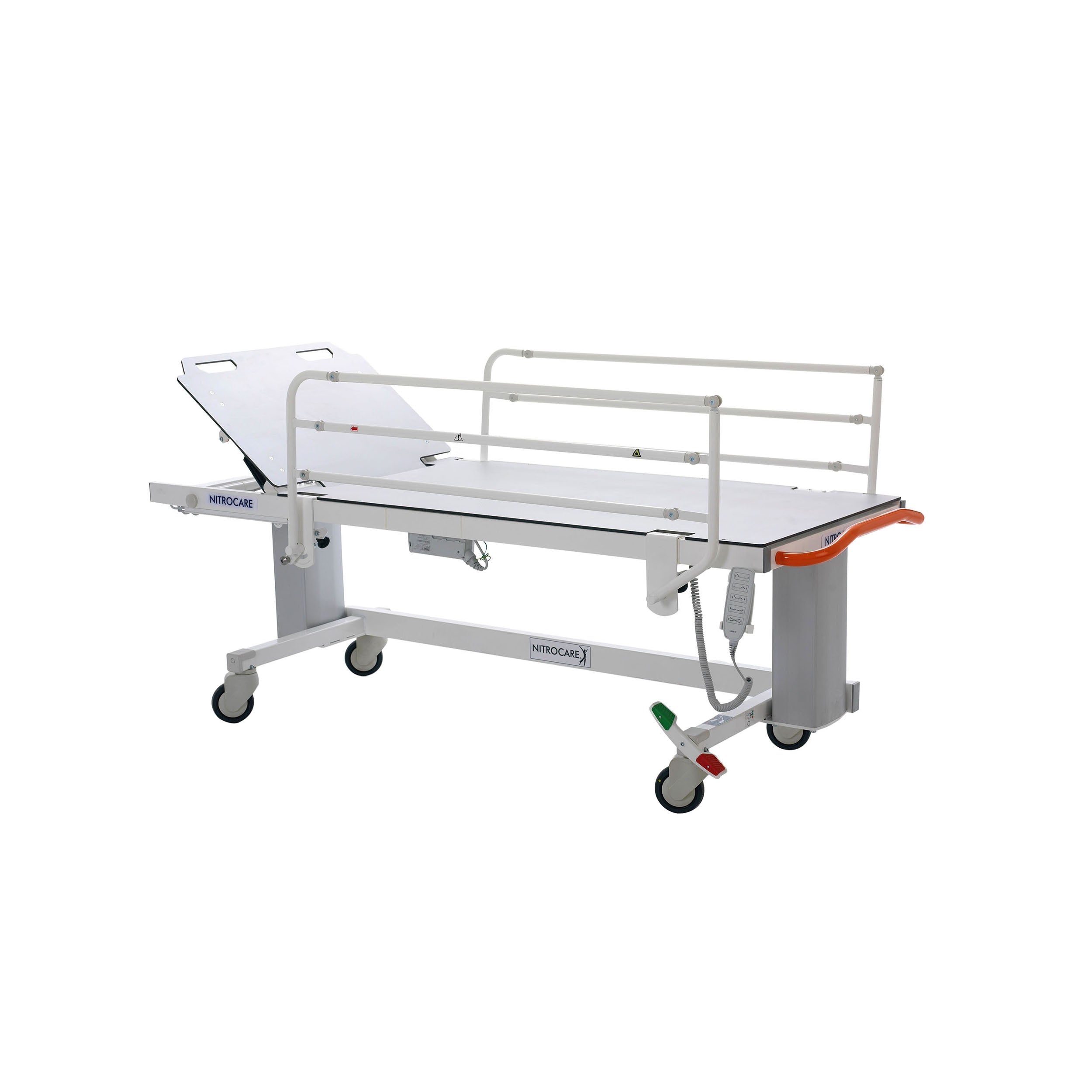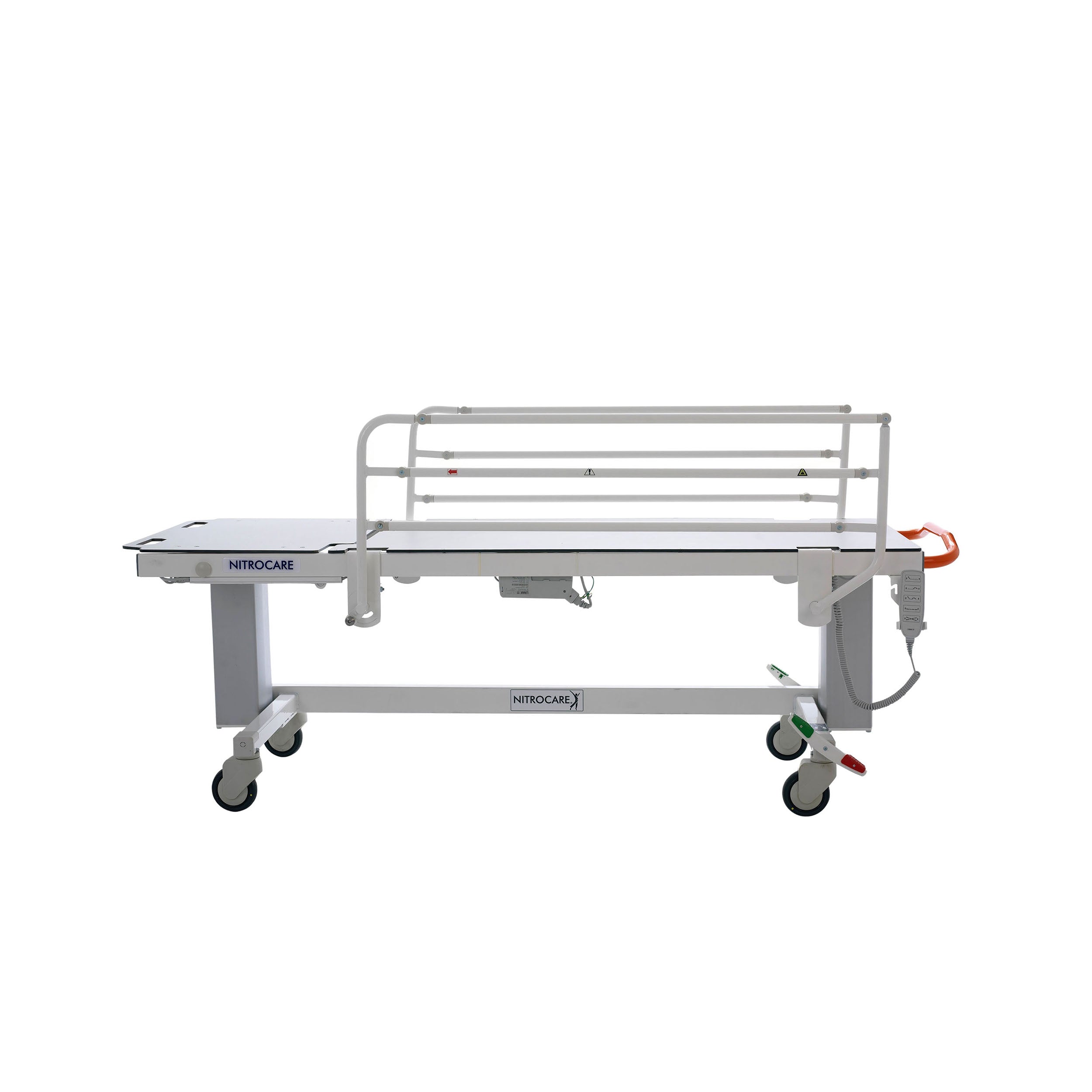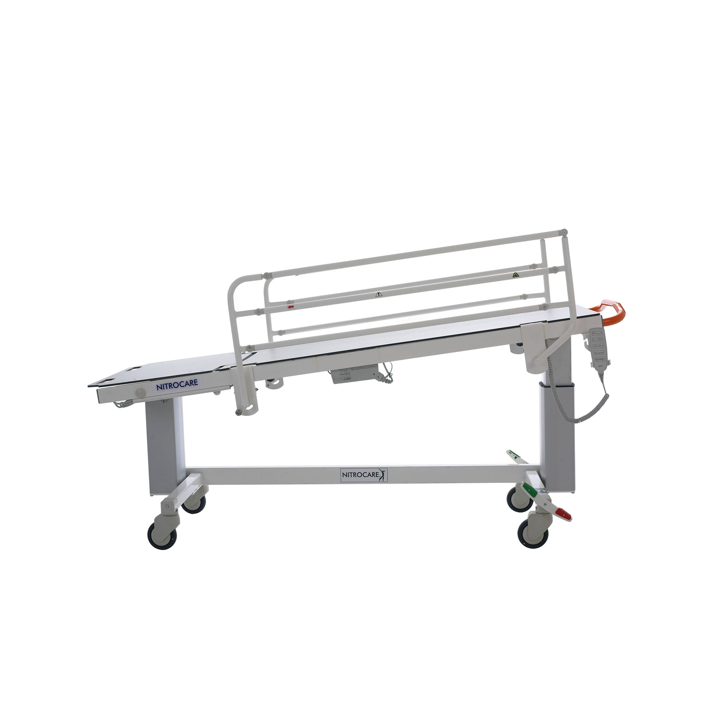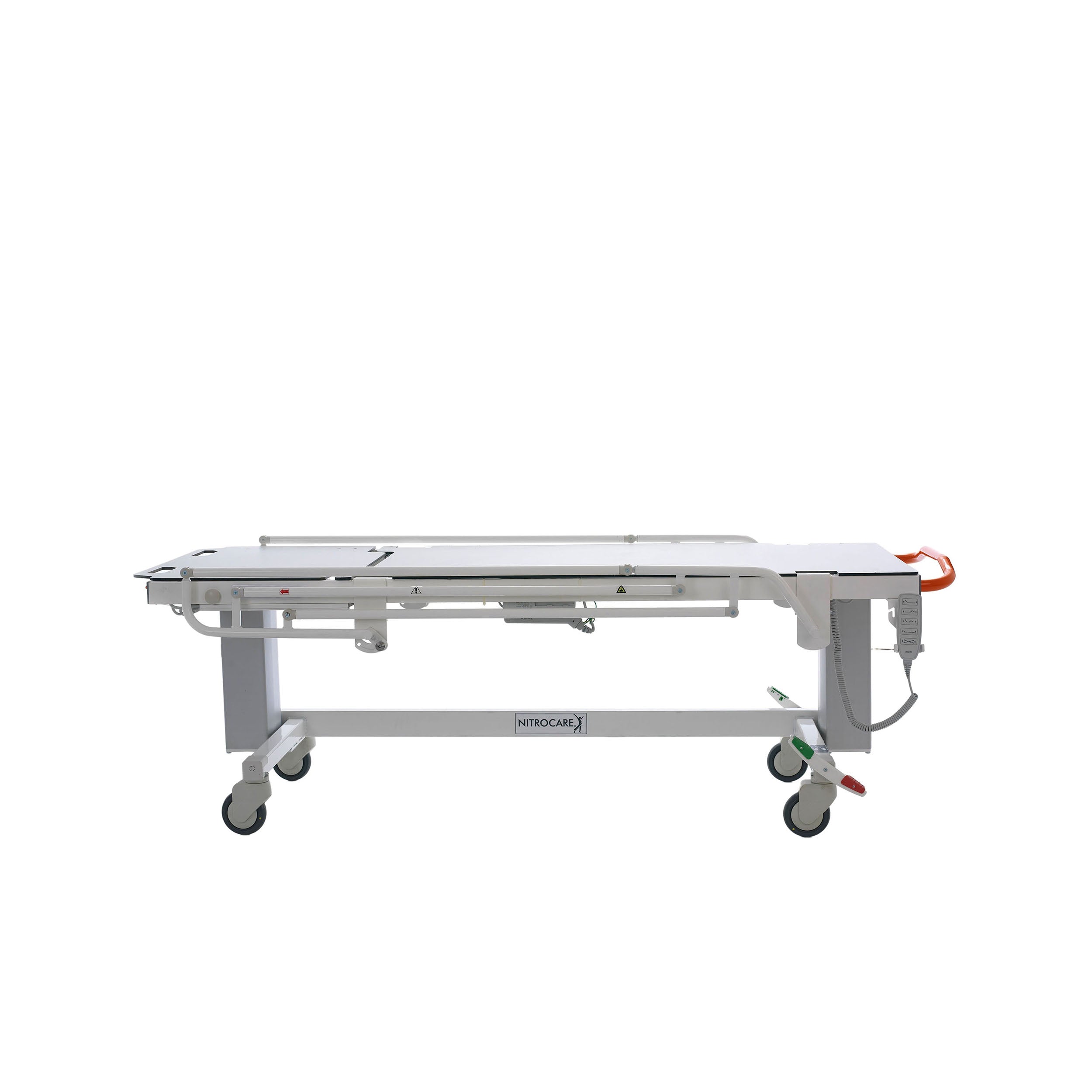 The Nitrocare SIGMA SD03 is a premium motorized hospital stretcher designed for C-Arm and X-ray imaging in emergency, surgical, and radiology settings. Powered by dual LINAK motors, it delivers smooth, precise adjustments for height and tilt, including Trendelenburg and reverse Trendelenburg positions. Its X-ray-transparent HPL surface ensures seamless imaging, while the durable steel frame with nano-tech coating resists corrosion and supports strict hygiene standards. With central brakes, antistatic castors, and a liquid-resistant mattress, the SIGMA SD03 combines advanced functionality, patient comfort, and long-term reliability.
