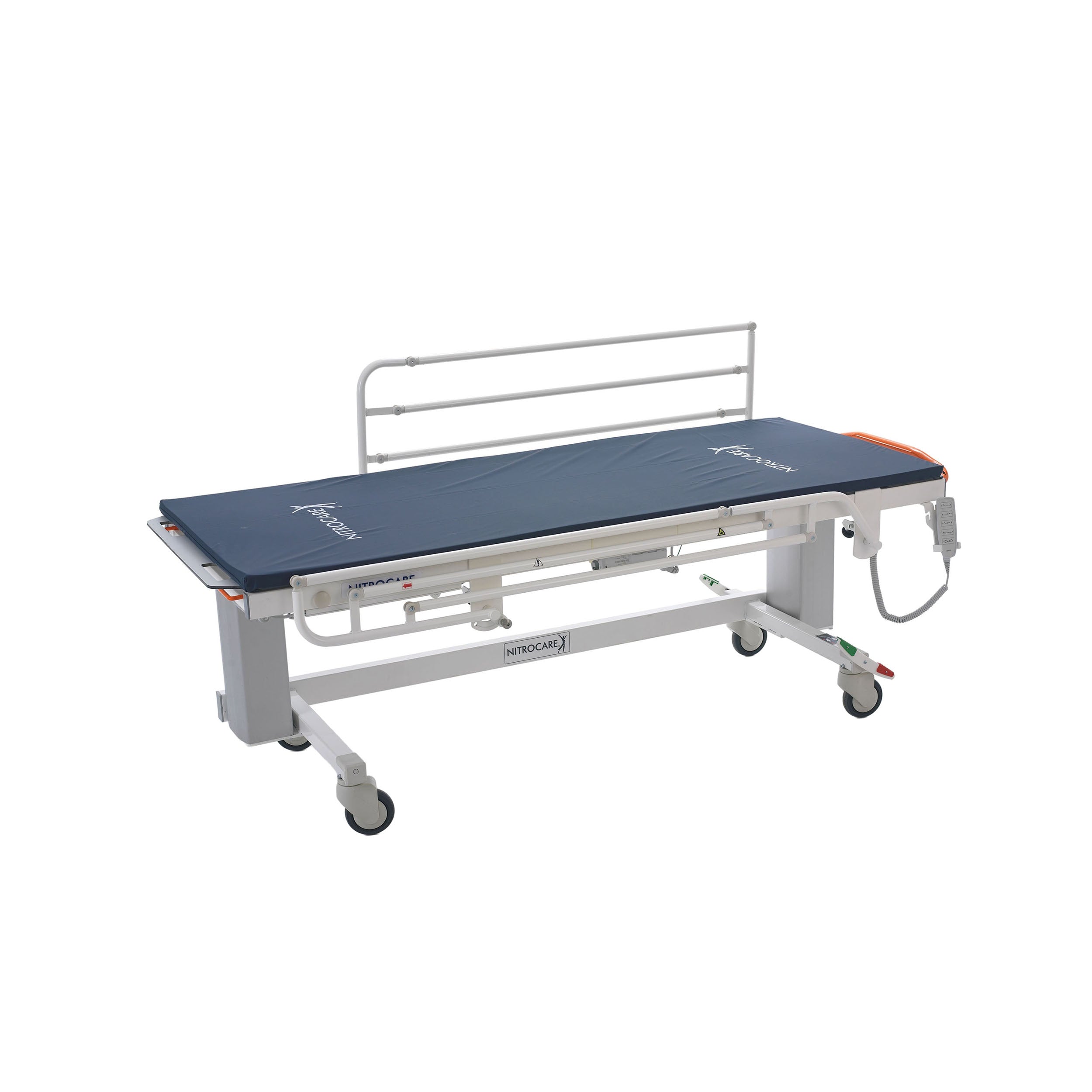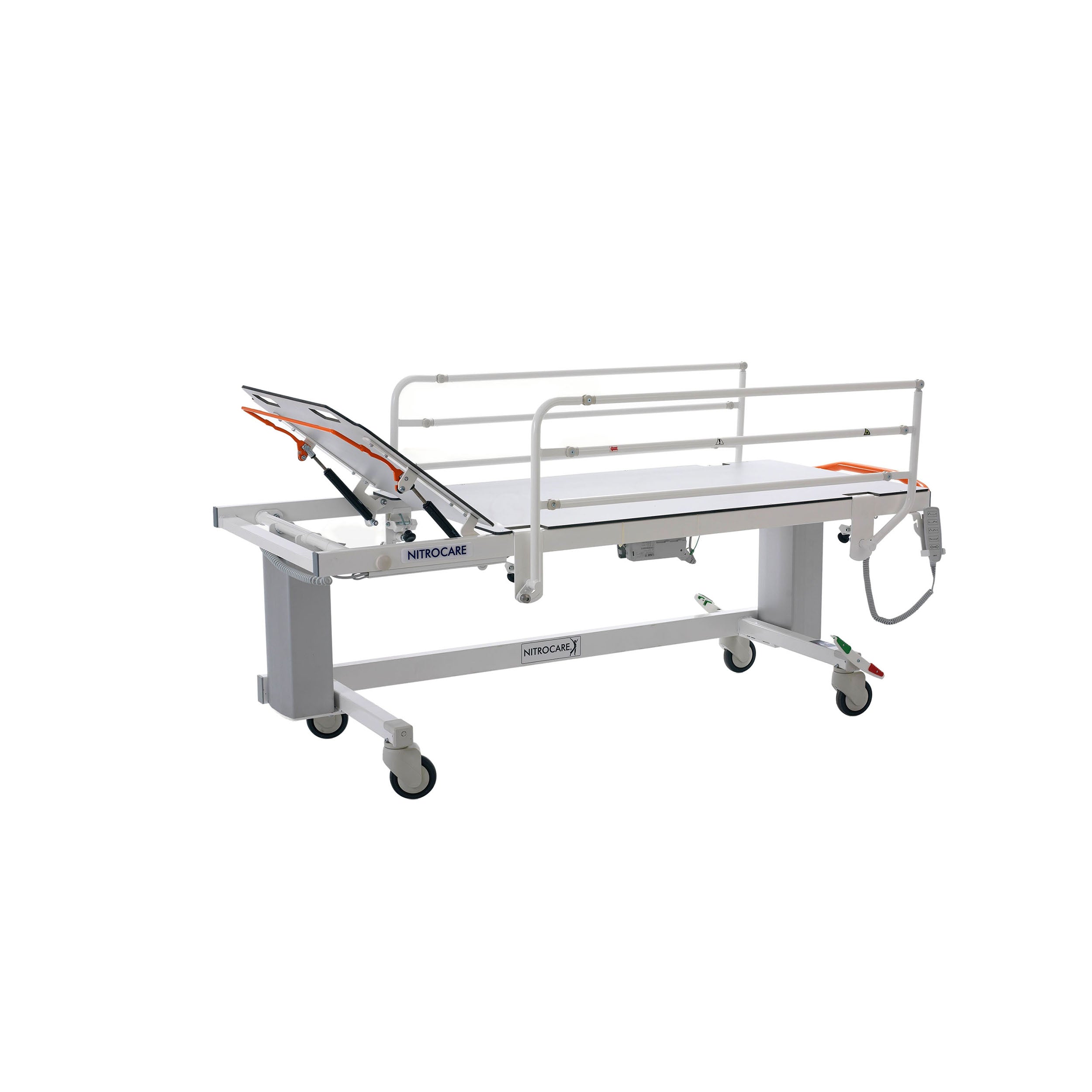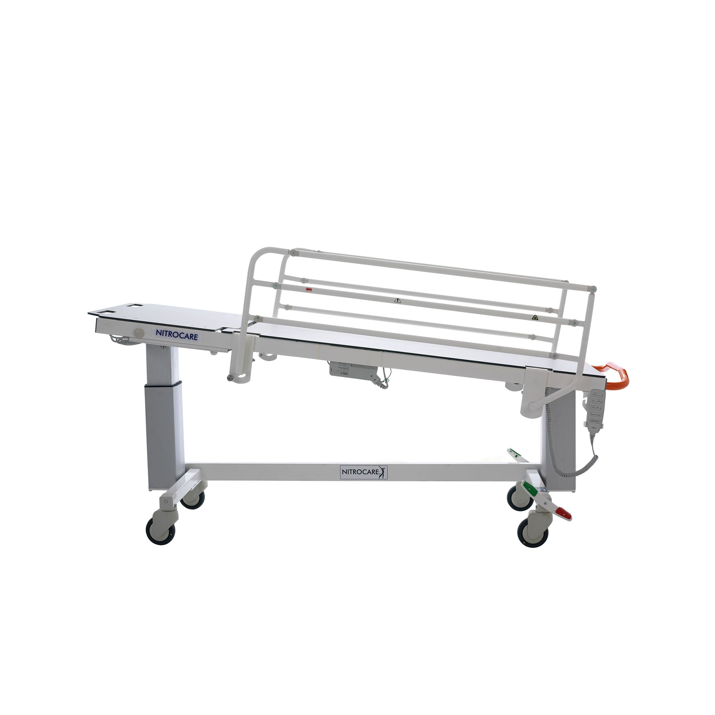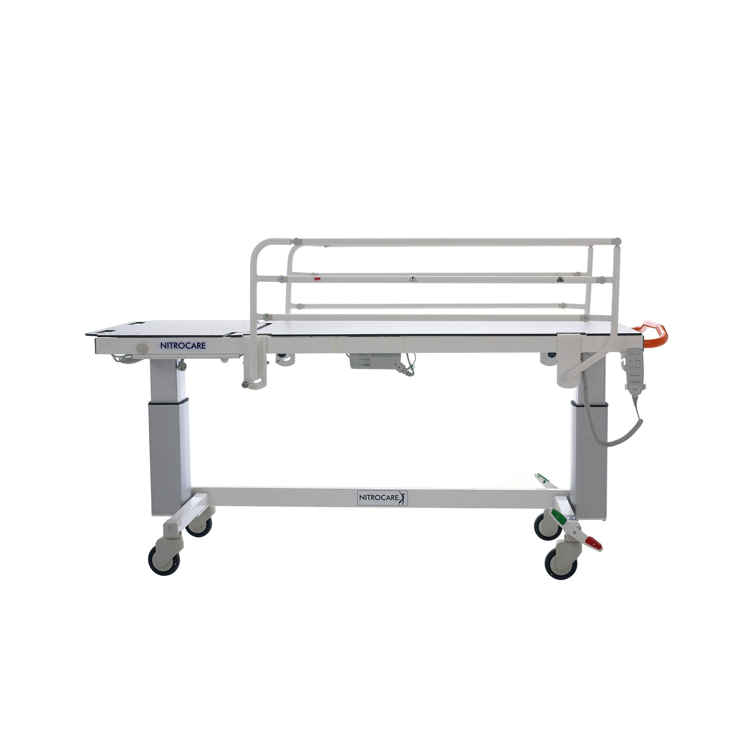 The Nitrocare SIGMA SD03 is a premium motorized hospital stretcher designed for C-Arm and X-ray imaging in emergency, surgical, and radiology settings. Powered by dual LINAK motors, it delivers smooth, precise adjustments for height and tilt, including Trendelenburg and reverse Trendelenburg positions. Its X-ray-transparent HPL surface ensures seamless imaging, while the durable steel frame with nano-tech coating resists corrosion and supports strict hygiene standards. With central brakes, antistatic castors, and a liquid-resistant mattress, the SIGMA SD03 combines advanced functionality, patient comfort, and long-term reliability.