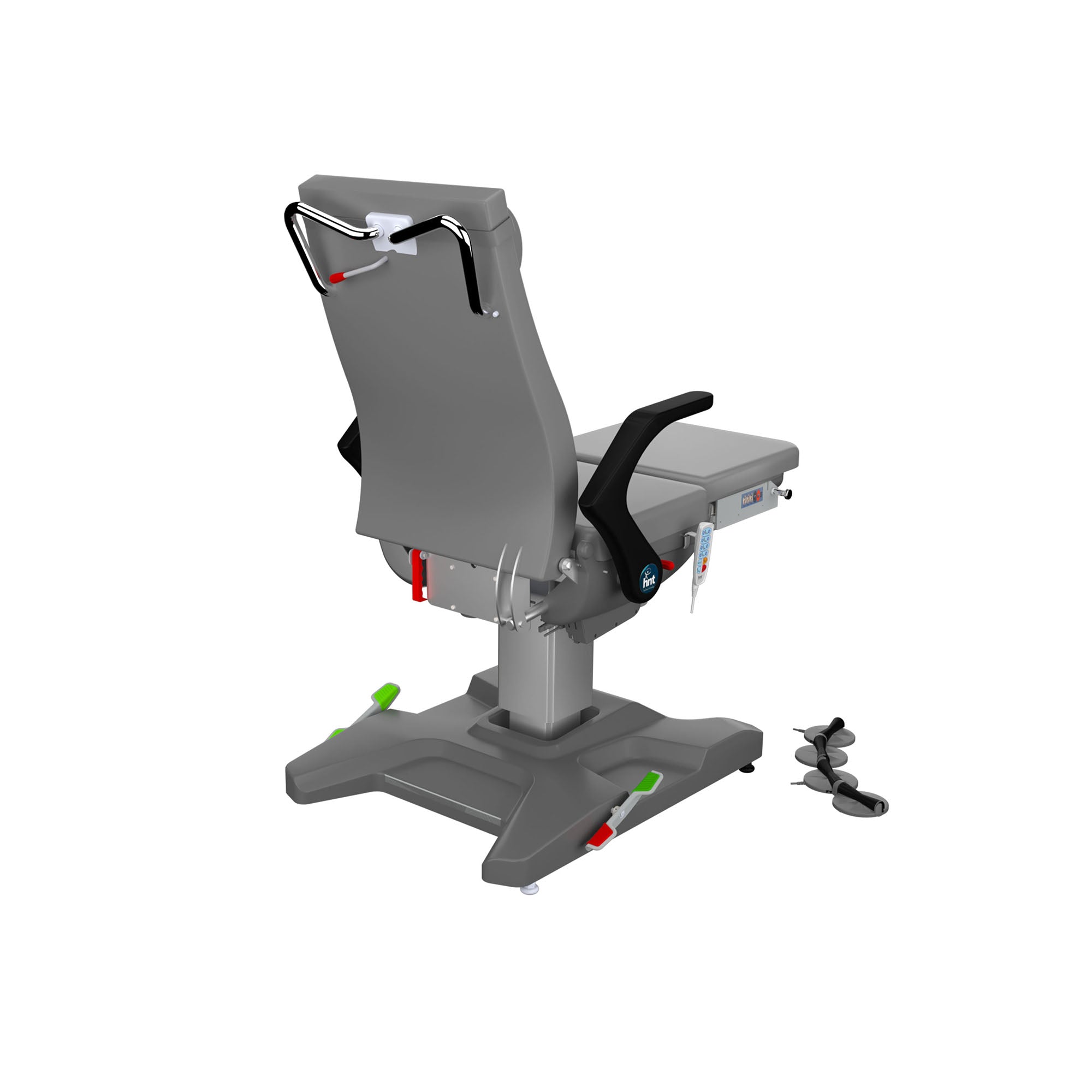 Adjustable Armrests: Barrier-free design for patient safety and practitioner access.